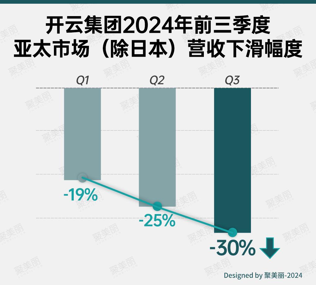 行业不景气,头部玩家是风向标。上半年净利几近腰斩的开云集团就在这场寒冬中迎来至暗时刻,聚美丽了解到,第三季度开云集团几乎所有市场表现恶化,其中包含中国市场在内的亚太市场(除日本)跌幅由一、二季度19%、25%的跌幅扩大至30%。