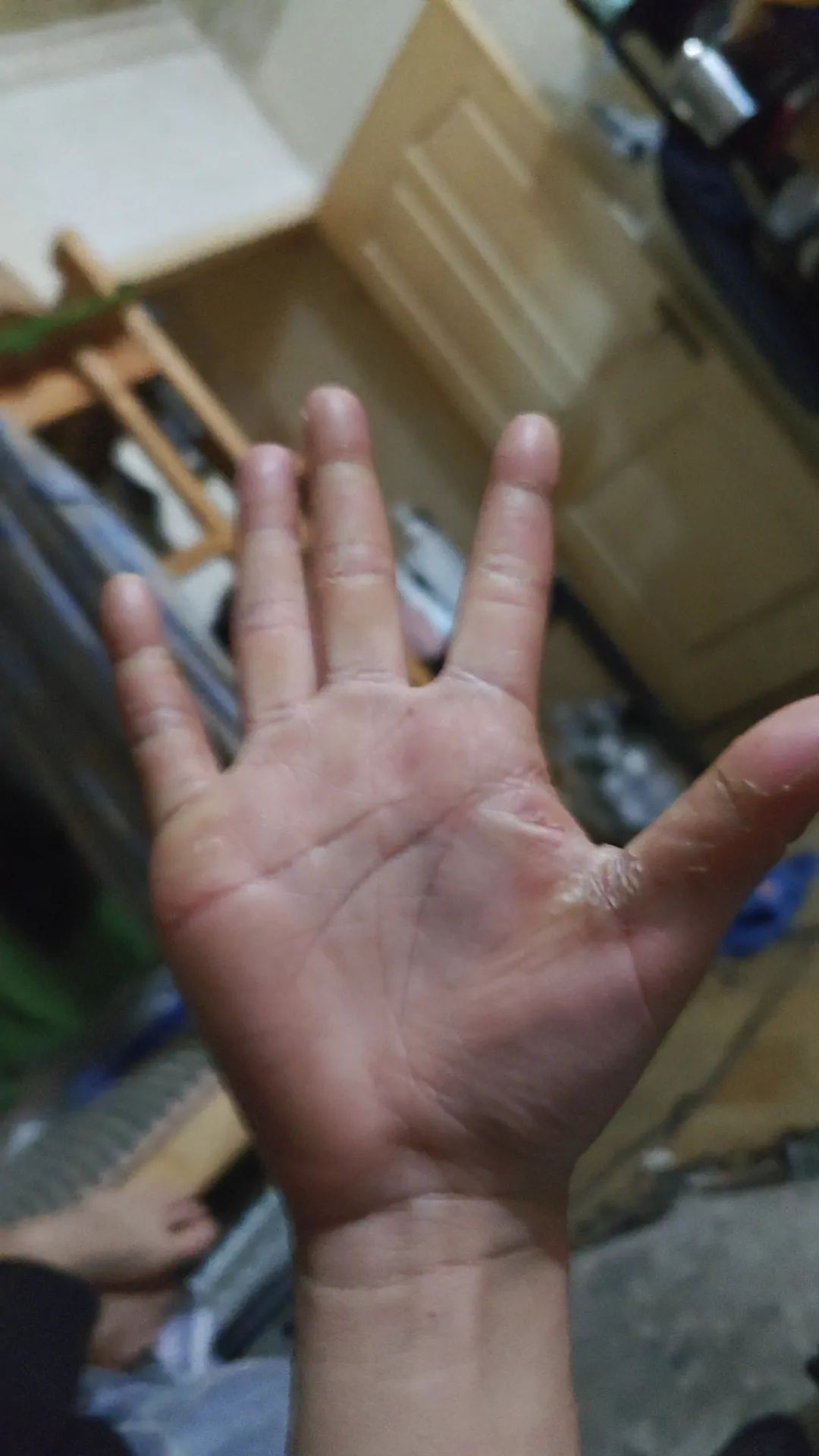 分拣员的手。(图/受访者供图)