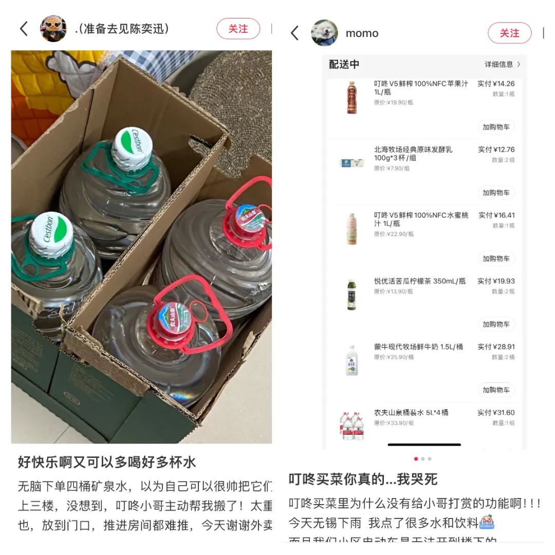 每到夏天,用户会成箱成箱地买水。(图/社交软件截图)