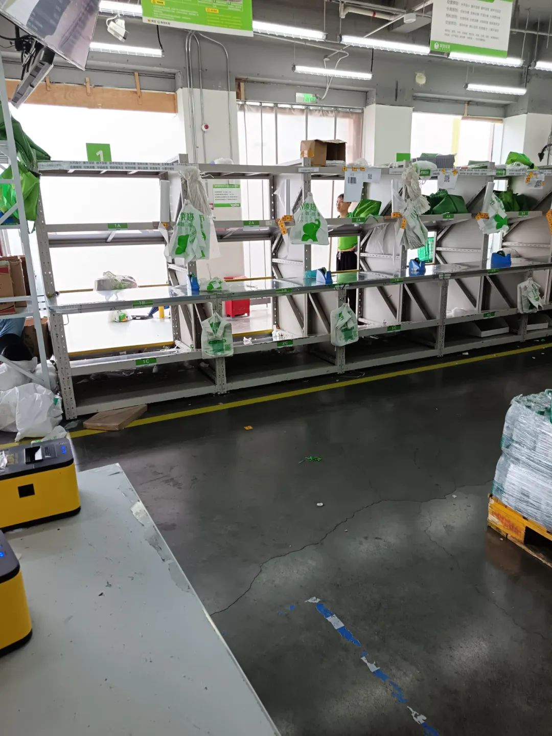 分拣的最后一环节是把商品打包好放在打包台。(图/作者 摄)