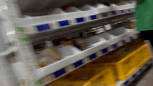 PDA上的标注十分清晰,每个人需要根据上面显示的信息,找到具体到货架的层格,按照要求拣出商品。如果是冻品,它会提示你加冰袋;如果是卫生巾等日用品,会提示你在外面多套一个袋子。但由于格子太多了,即便按照定位找到货架,还需要一格一格查看。