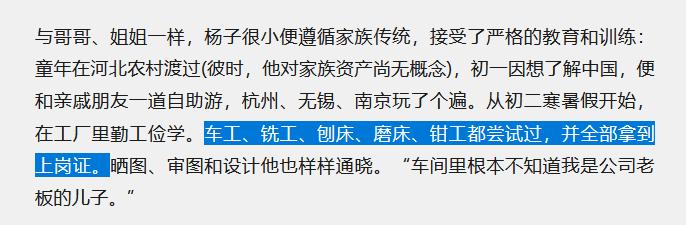 杨子是个有实践能力的文化人,下有初中的工厂实习(五个上岗证),上有北大MBA学历,逢人介绍自己时不能忘记强调文化底蕴这一重要节点。