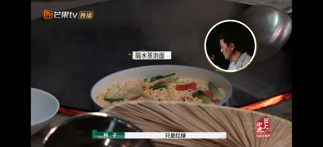 最后杨总拿出的成品aka天底下最好吃的面,还起了个中国风优雅菜名“只是红绿”,实际上就是隔水蒸出来的方便面。