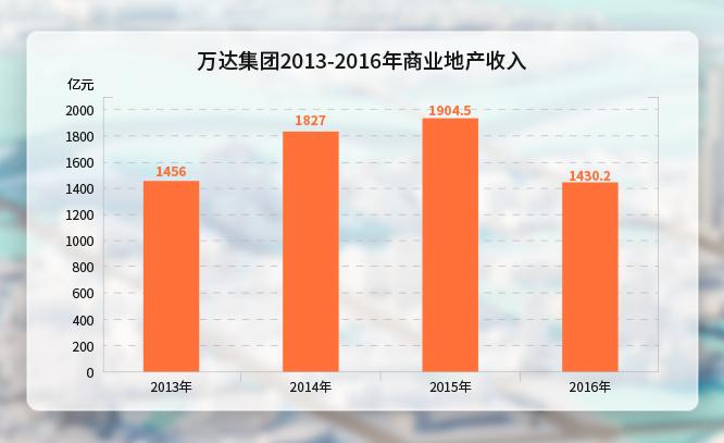 王健林接连登上“首富”宝座,依靠的并不是商业、百货、文旅、酒店等服务业态,而是房地产开发——2013-2016年商业地产收入分别为1456亿元、1827亿元、1904.5亿元、1430.2亿元。