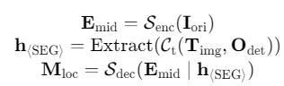 其中,S_enc和S_dec分别为图像的编码器与解码器,Extract(⋅)为提取嵌入的操作,通过上述步骤,MFLM利用文本描述和图像特征的对齐生成准确的二值掩膜。