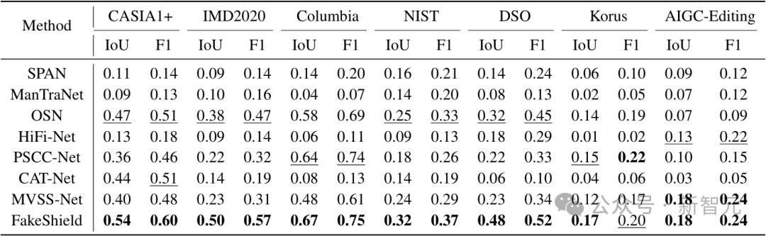 表1:FakeShield与主流IFDL方法的定位性能比较