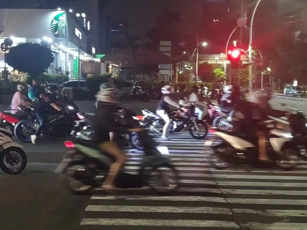 凌晨2点25分,在信号灯由红变绿的那一刻,数十辆摩托车以极高的分贝轰鸣而过。