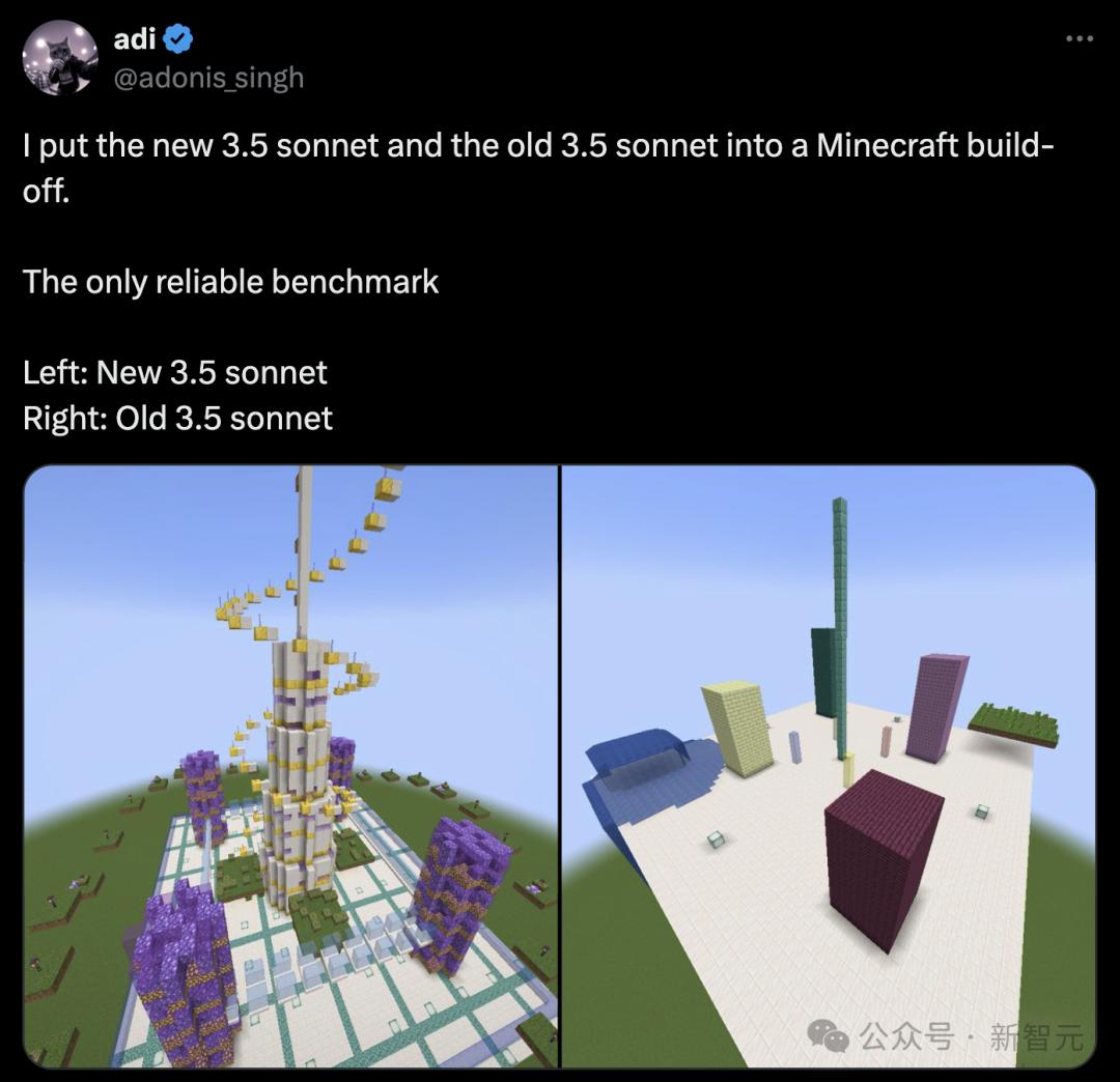 进化版(左)和旧版(右)Claude 3.5 Sonnet在「我的世界」中构建的样子,令人印象深刻。