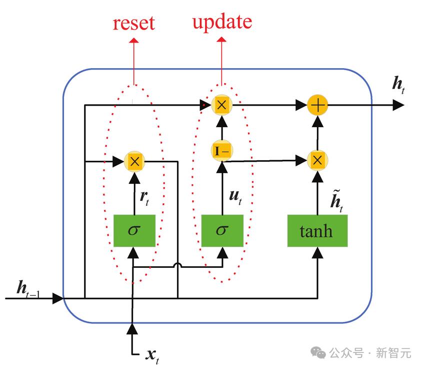 但是现在ht-1和rt都没了,tanh也失去了存在的意义,删掉。
