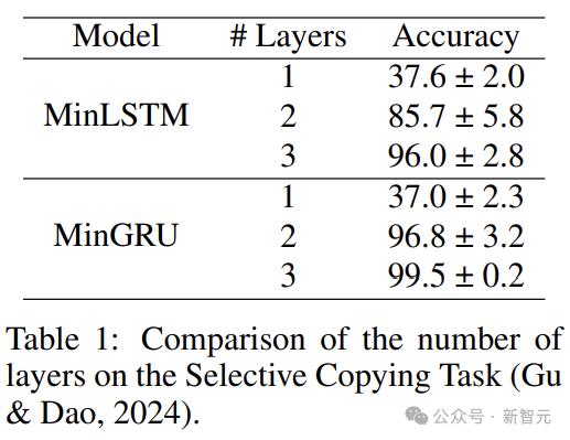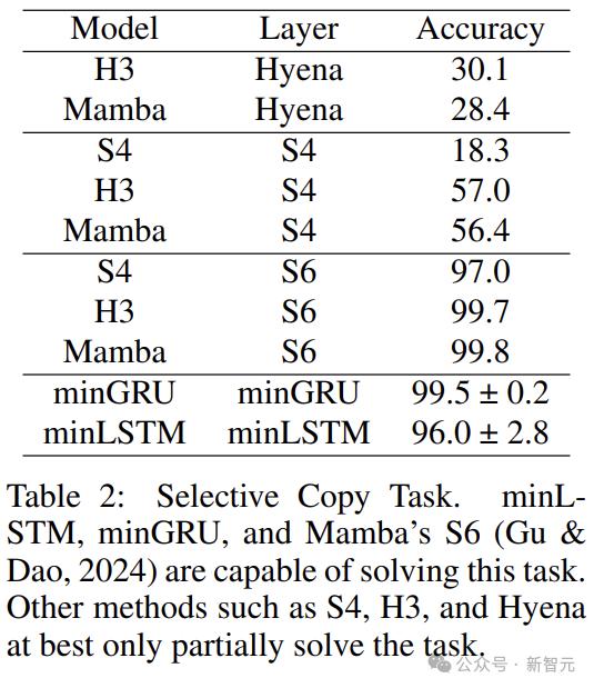 在所有这些基线中,只有Mamba的S6,以及本文的minGRU和minLSTM能够解决此任务,体现了LSTM和GRU的内容感知门控机制。