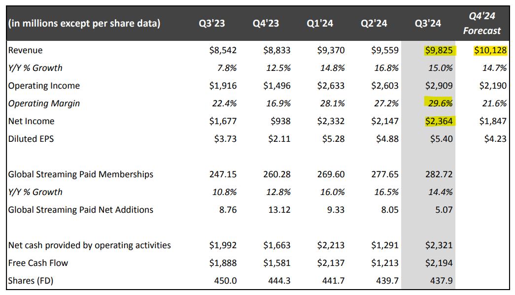 Netflix 2024年度Q3收益表