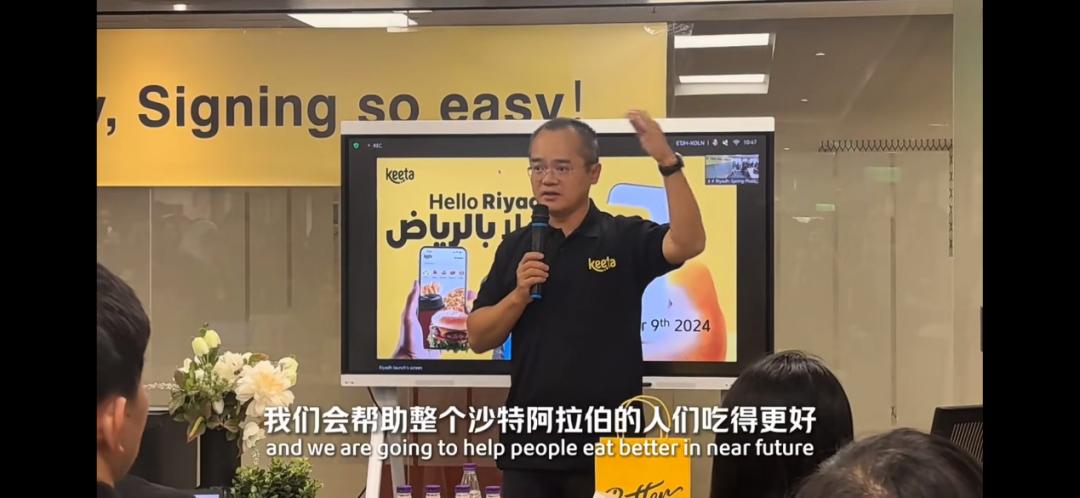 Keeta 在香港的成功提振了美团出海的士气,乐观的氛围延伸到了中东战场,在流传出的视频里,创始人王兴现身利雅得并进行全英文发言:「我们会在这里成为一个优秀的品牌,在利雅得帮助大家吃的更好。」