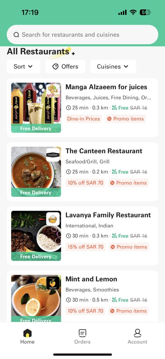 此外,除了肯德基、星巴克等连锁品牌,大部分出现在 Keeta 平台的餐饮,都有10%-20% 的限时折扣。针对沙特人爱给全家点外卖的习惯,Keeta 还贴心地推出了优惠套餐板块。