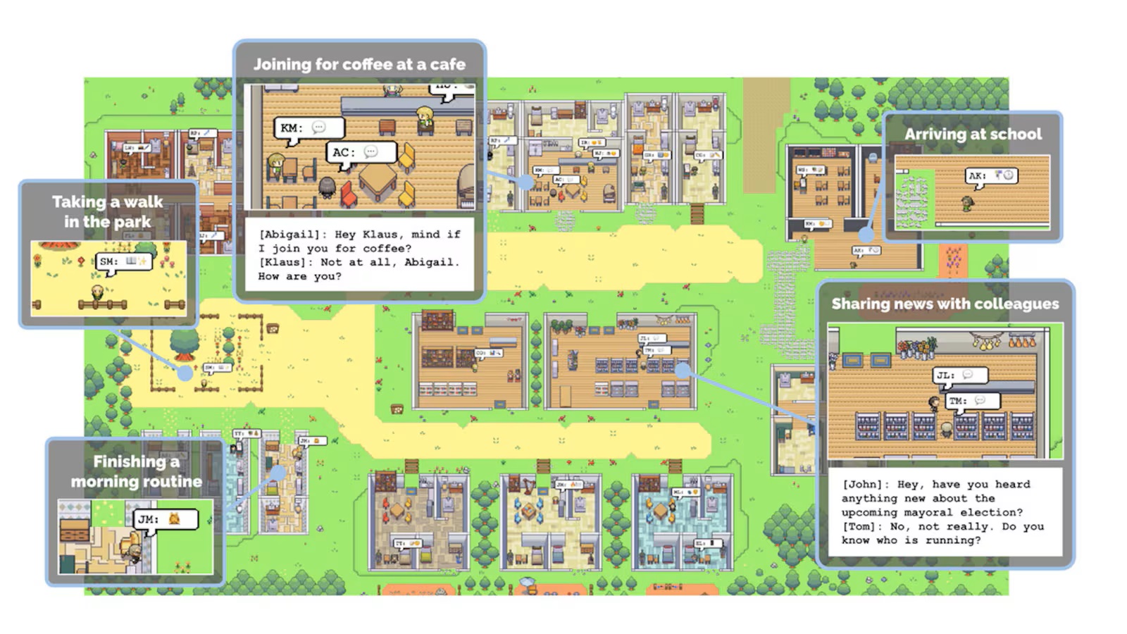 去年,斯坦福大学和谷歌的联合研究团队发表了一篇题为《生成式智能体:人类行为的交互式模拟》的研究论文。在文中,居住在虚拟小镇Smallville的25个虚拟人在接入ChatGPT之后,表现出各种类似人类的行为,由此带火了AI智能体概念。