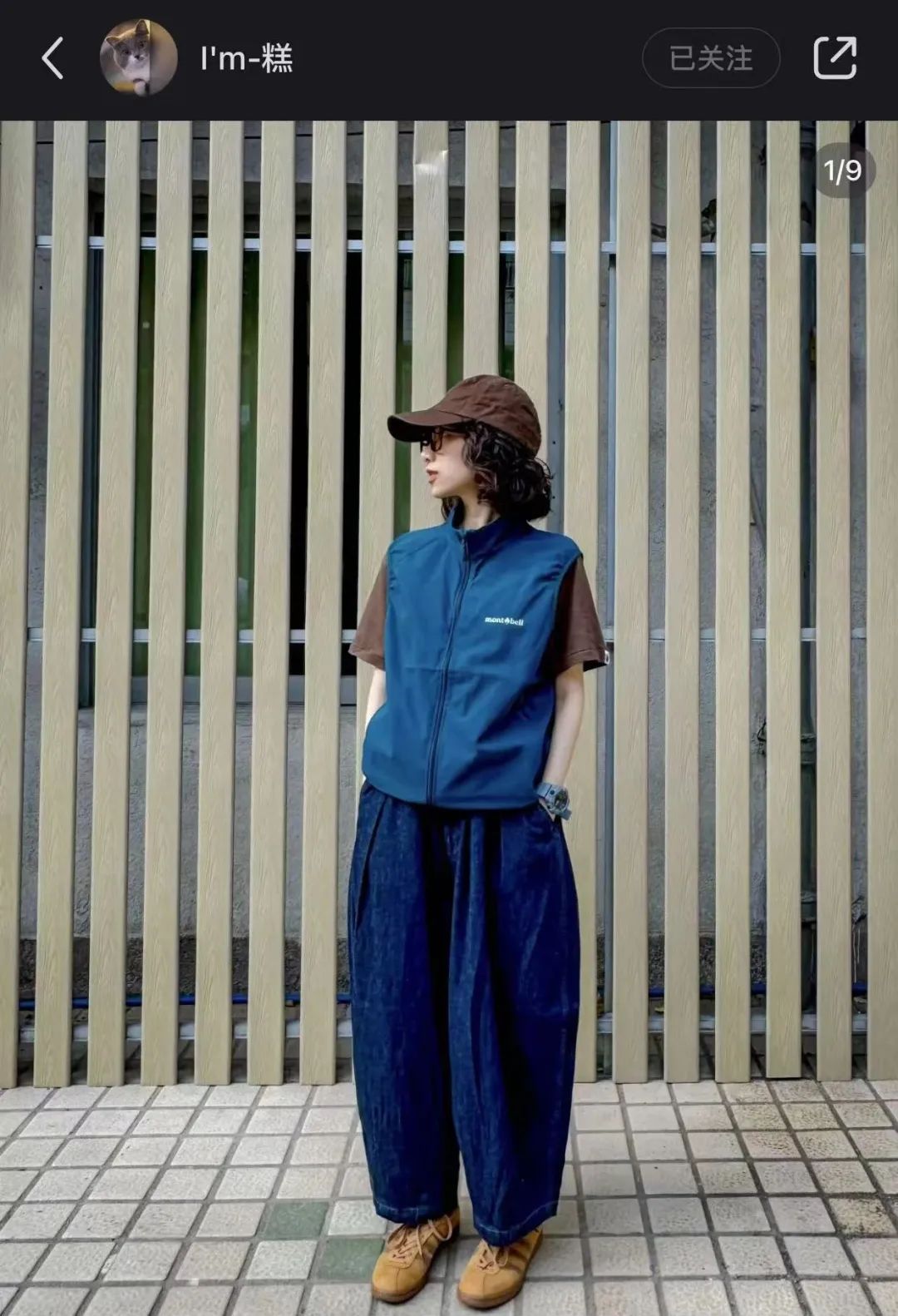 montbell马甲与拉夫劳伦棒球帽、潮牌BAPE T恤、气球牛仔裤、阿迪达斯德训鞋搭配,凹出随性层次感。