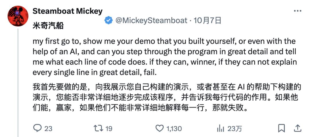 Greg Yang 的评论区就有人建议,为了防止候选人用 AI 作弊,最有效的方式还是让他们展示自己或在 AI 辅助下开发的项目,最好是能够深入解释每一行代码。