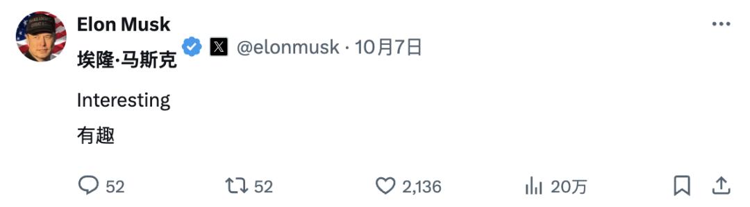 当时,赶来凑热闹的马斯克也现身评论区,贡献了一句经典的「Interesting」。