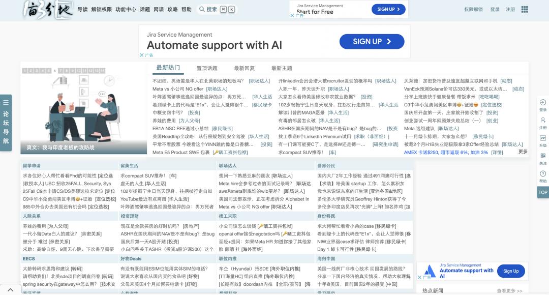 Greg Yang 称一亩三分地社区是技术面试领域最全面的资料库,但顶不住这个社区过于全面。关于人际关系、签证手续,职场达人,学习研究等话题的讨论也络绎不绝。