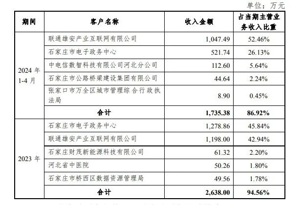 智慧产业公司则主要为政务、环保等领域客户的信息化建设提供解决方案、硬件产品和专业服务。2024年1-4月,前两大客户为公司贡献了78.6%的收入。