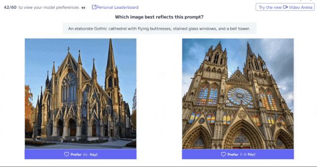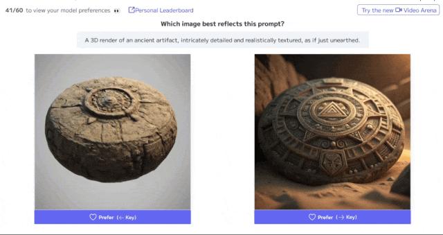 规则也很简单,随机两个匿名模型pk,用户只需选出最喜欢、觉得更符合提示词的图片就行。