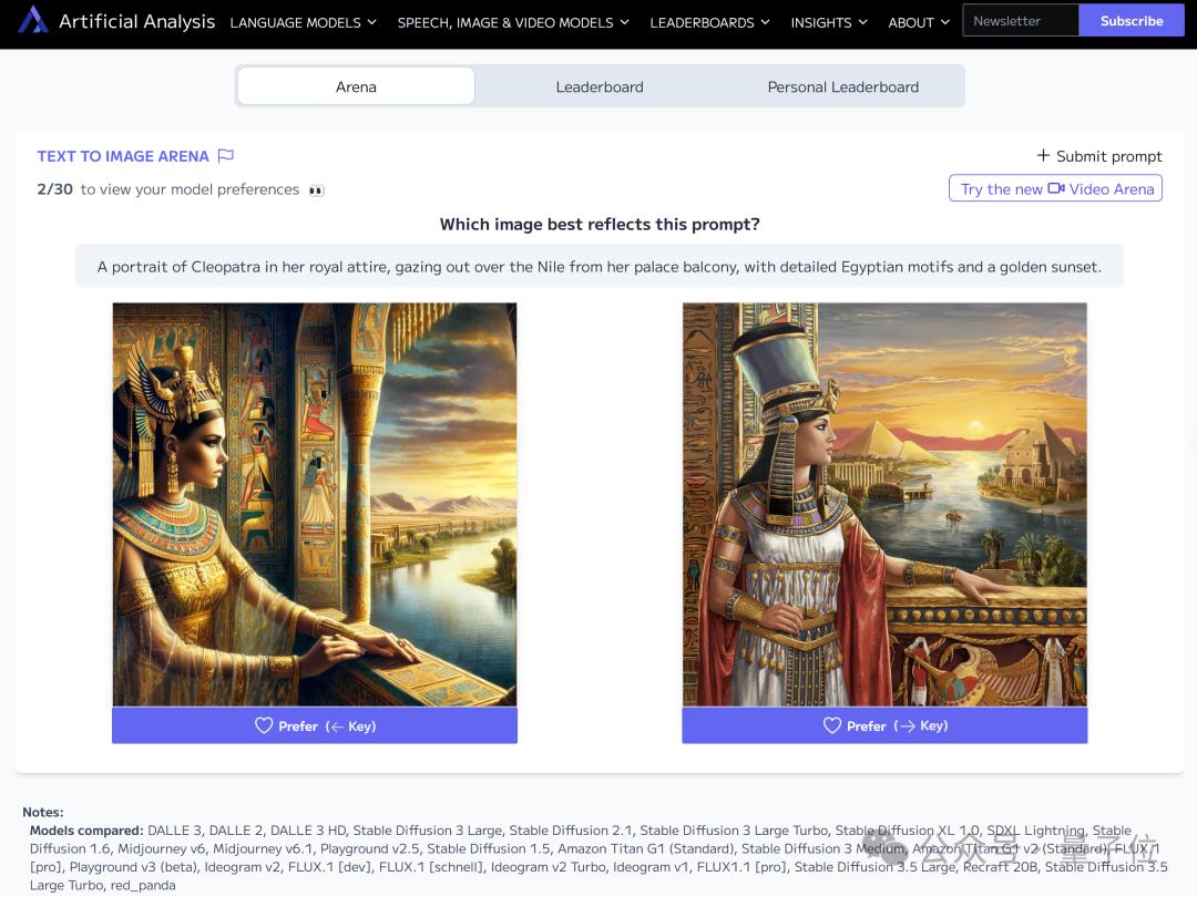竞技场地址:https://artificialanalysis.ai/text-to-image/arena?tab=Leaderboard