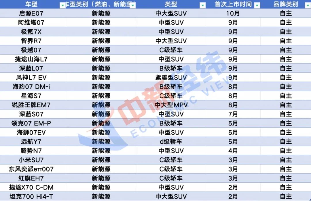 ▲2024年部分名字含“7”的新车 中新经纬 龚宸芫制表
