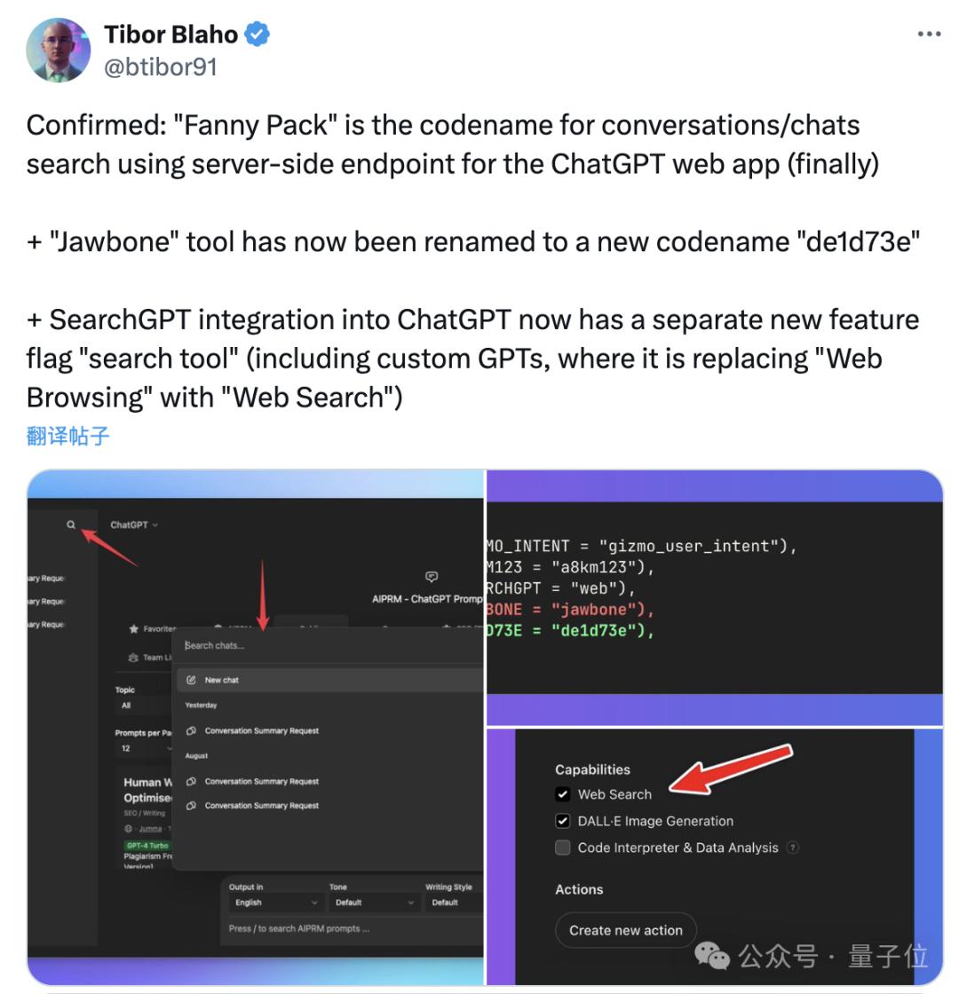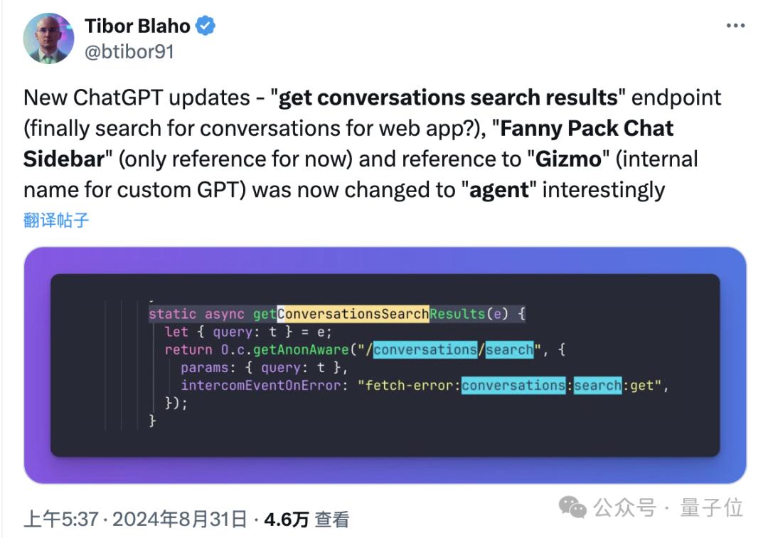 当时,黑客Tibor Blaho(光头哥)从ChatGPT的代码中发现了一个名为“get Conversations Search Results”(获取对话搜索结果)的函数。
