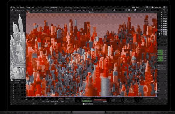 - 使用Blender进行3D渲染的速度,比搭载Core i7处理器的13英寸MacBook Pro提升最多可达10.9倍,相比搭载M1芯片的13英寸MacBook Pro提升最多可达3.4倍。