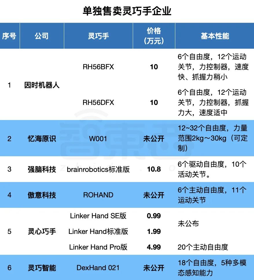 ▲单独售卖灵巧手的企业/创企(整理自公开信息,智东西制表)