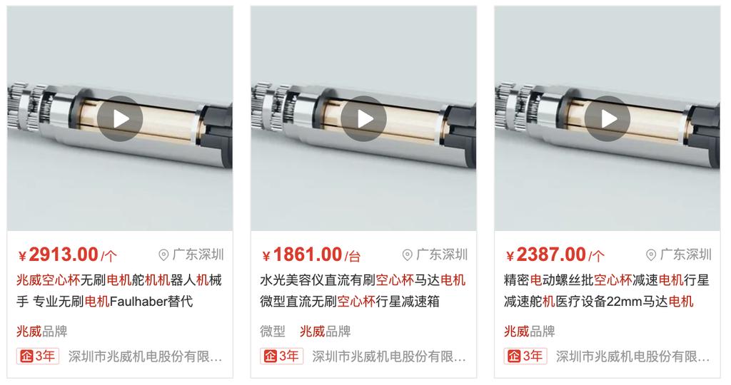 ▲兆威机电的空心杯电机价格(图源:爱采购)