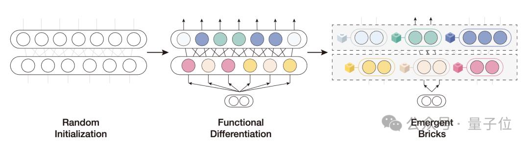 随机初始化的模型参数,在预训练过程中,模型神经元将会自发地产生功能分化的现象,进而组成了大模型的功能分区。在推理阶段,只有与当前输入内容相关的功能分区会被激活,并作用于模型的输出结果。