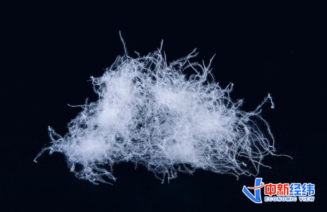 海洋羽毛于2022年入选工信部专精特新“小巨人”企业。海洋羽毛常务副总经理张文军向中新经纬展示了一段视频,视频中分别有两簇羽绒,其中一簇被打火机迅速点燃烧光,而另一簇却始终没有烧起来。