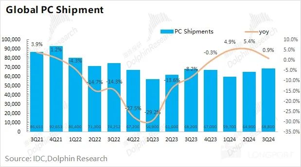 从行业数据来看,全球 PC 出货量本季度增速再次回落。本季度全球 PC 出货量 6880 万台,同比增长 0.9%,市场整体需求仍然疲软。而至于竞争对手,AMD 本季度客户端业务收入实现同比增长 29.5%。