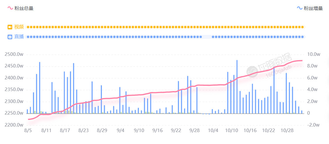 即使在舆论层面饱受差评,但董宇辉的粉丝量和销售额受到的影响并不大。截至11月2日,与辉同行抖音账号粉丝数为2474.4万,100天内涨粉296万。