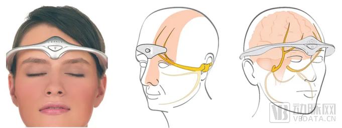 与ShiraTronics选择刺激枕下神经和眶上神经不同的是,Cefaly采用的非侵入式技术,研发了一款体外三叉神经刺激系统(eTNS),主要针对三叉神经第一分支,具有治疗偏头痛、预防偏头痛、舒缓压力三个功能模式。