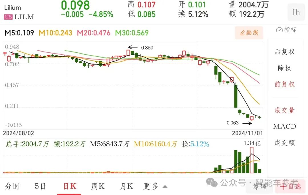 目前,Lilium的股价暴跌超60%,已不足0.1美元,折合成人民币大概只有7毛钱,市值仅剩6199.9万美元(约4.4亿元)。