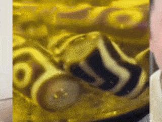 而所谓天珠的“天眼纹饰”,也就是那些以眼球为主,辅以三角形、四边形等的“天然形成的规则图案”,当然也可以通过切割机打磨定型,滚筒机里边抛光做出来,甚至路边普通的水泥和石子也可以做成“黑不溜丢的这种天珠”。