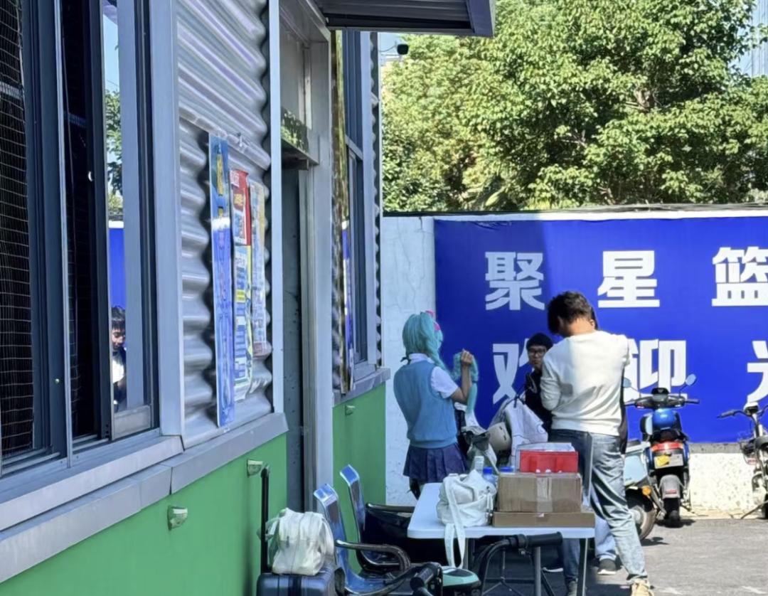 这个球馆的位置即使在县城也算得上偏僻,因此在一片荒无人烟的地方看到几个穿着二次元装扮的人,多少会让人产生一些不和谐的错位感。想象一下,大概就是贾樟柯电影中出现了二次元coser的感觉。