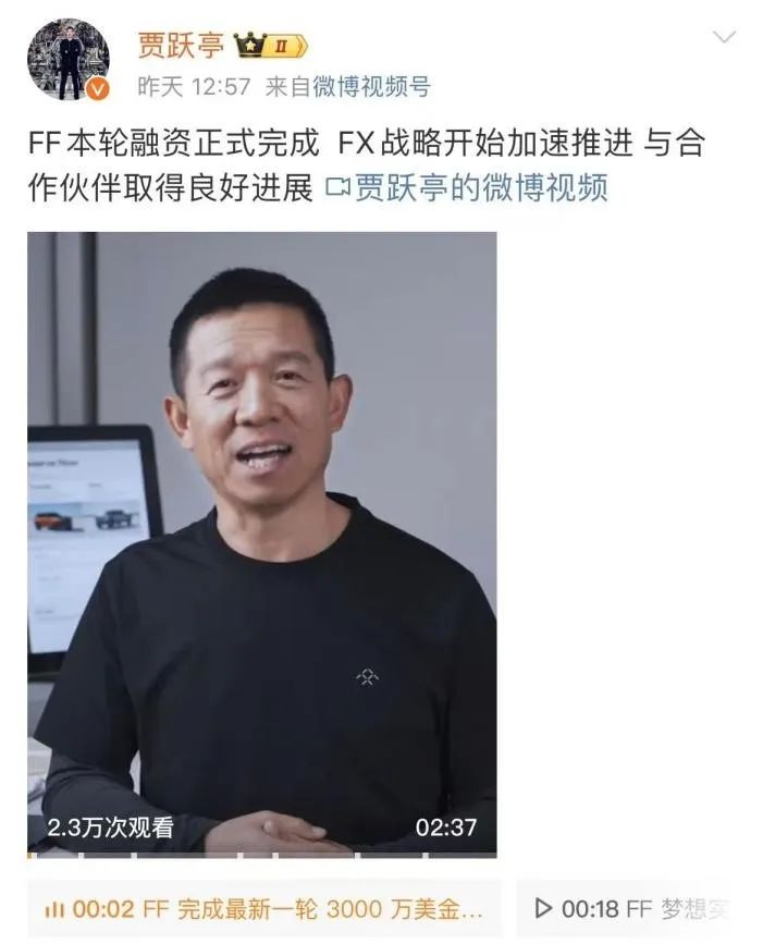 2个亿刚刚到账,贾跃亭又拿到融资了