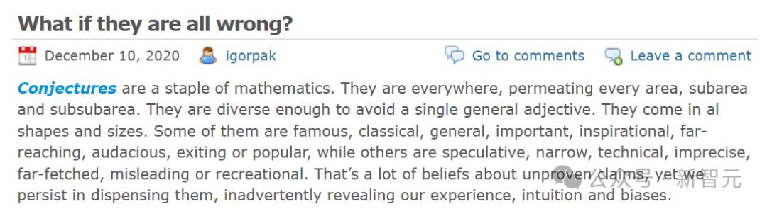 与此同时,Pak表示,数学家们显然需要更积极地讨论数学证明的本质。他们最终并未依赖有争议的计算方法,而是以完全确定的方式推翻了猜想。