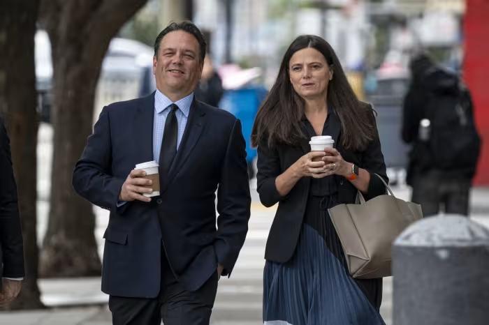 微软游戏部门主管菲尔·斯宾塞(左)与首席财务官艾米·胡德