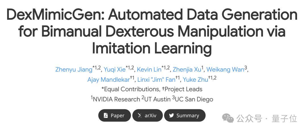 DexMimicGen的共同一作有三人,都是UT奥斯汀的华人学生。