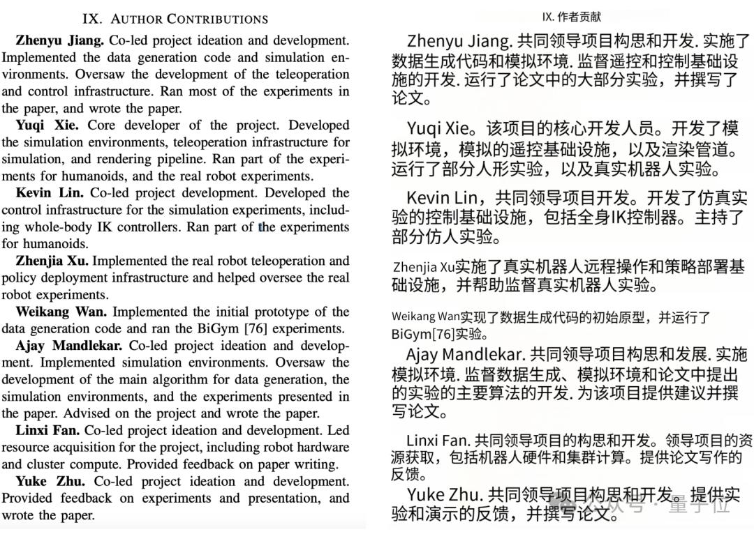 另外,Zhenjia Xu和Weikang Wan两名华人学者对此项目亦有贡献,整个团队的分工如下: