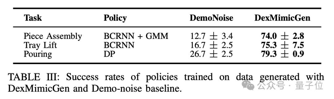 而且可用性强,用这些新demo训练出的机器人,在仿真环境中的任务成功率可以高达97%,比用真人数据效果还要好。