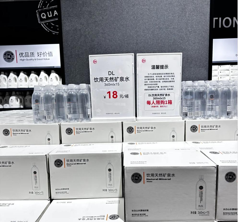 第一波涌入这家永辉超市的,不少是冲着“胖东来”三个字来的,在他们看来这是北京人自己的胖东来。在这家永辉超市里上架了不少胖东来网红自营产品,比如DL精酿啤酒、DL矿泉水、DL洗衣液等。