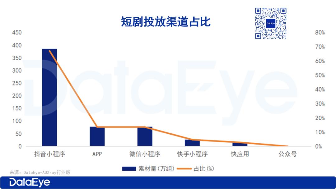 10月短剧投放渠道中,抖音小程序稳居第一,APP和微信小程序分别位列第二和第三。