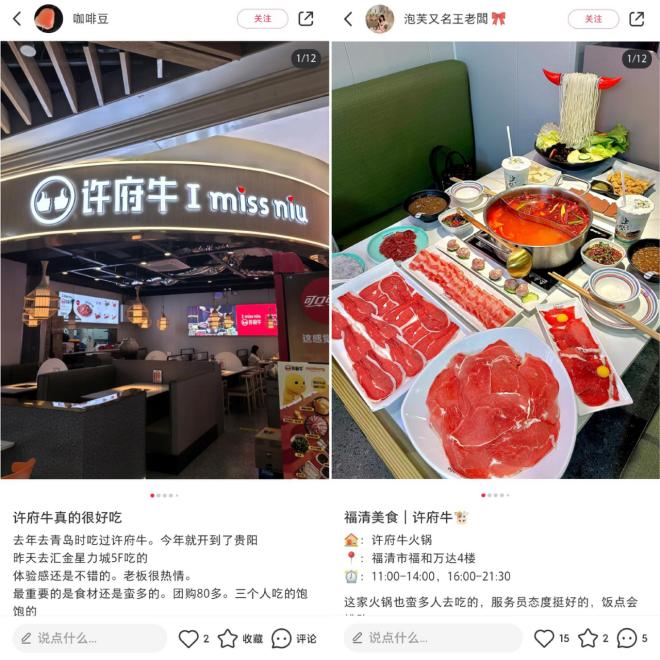 相比之下,许多渣渣牛肉火锅品牌选择与本地博主和网红合作。他们通过探店、团餐和美食滤镜等方式,凸显渣渣牛肉的特色,成功实现了品类的突破。