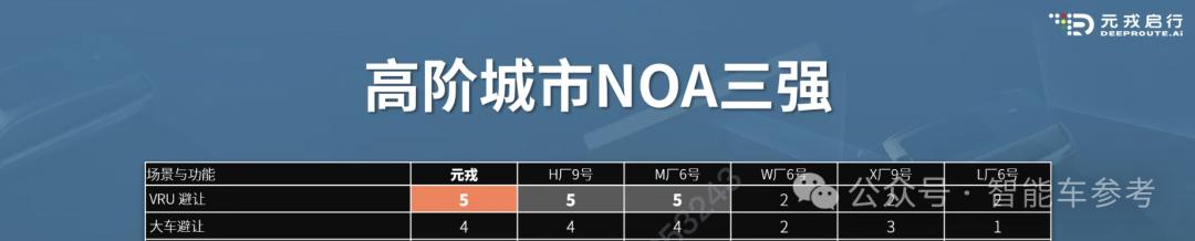 周光认为,在经过多项能力比拼验证后,现在元戎启行和M厂、H厂已成为“高阶城市NOA三强”,比后面三家“遥遥领先”。H厂和M厂是谁大家都秒懂,不再多说doge。