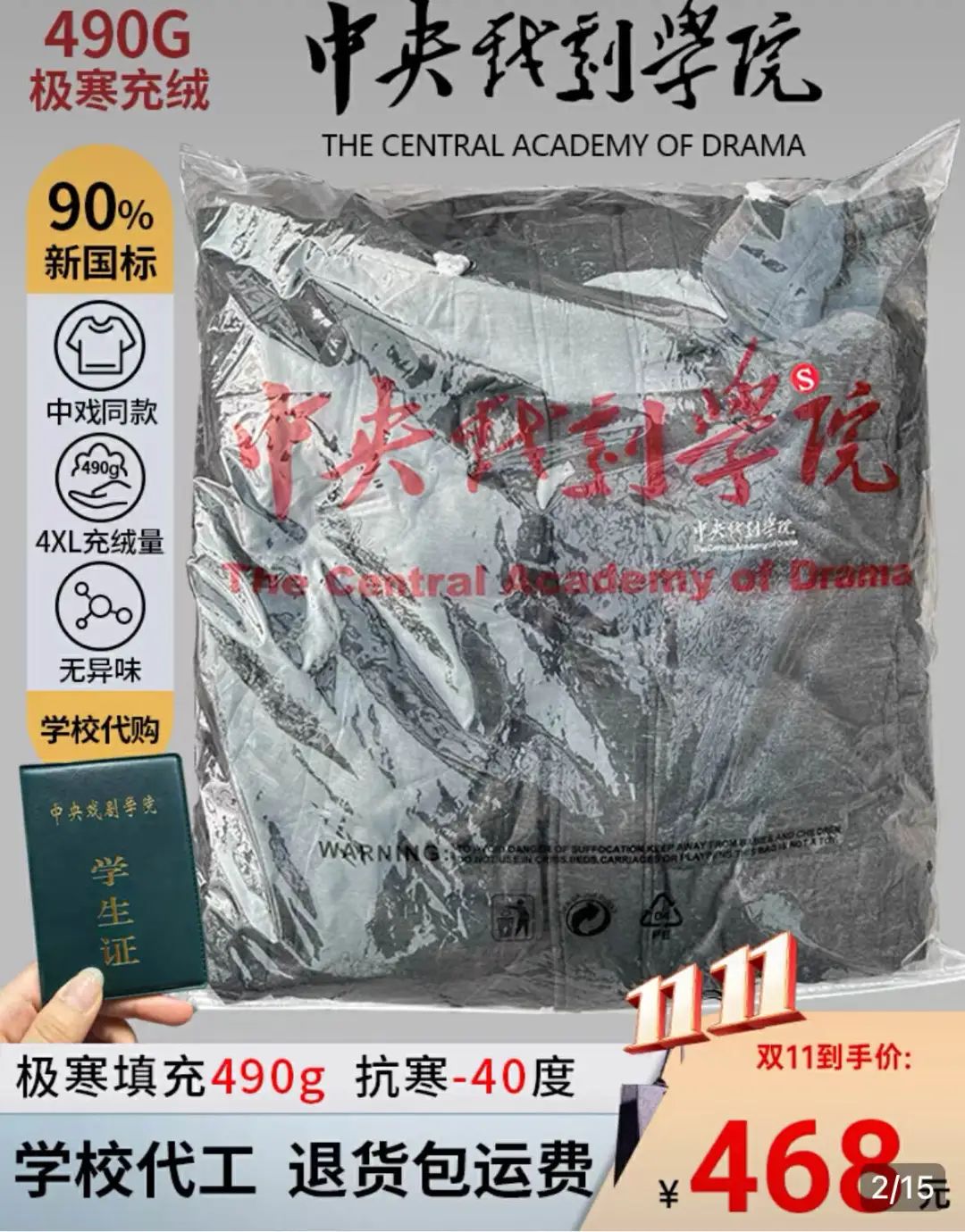 当年中戏的黑色长款羽绒服依旧是冬日销冠,“卖了好几年还是经久不晒,几个大店的一个链接就能卖20万件,现在也有了更多颜色和款式”。黑色耐脏、长款体感上又比短款性价比更高,“你看直播间卖的都是各品牌的黑色长款羽绒服”。
