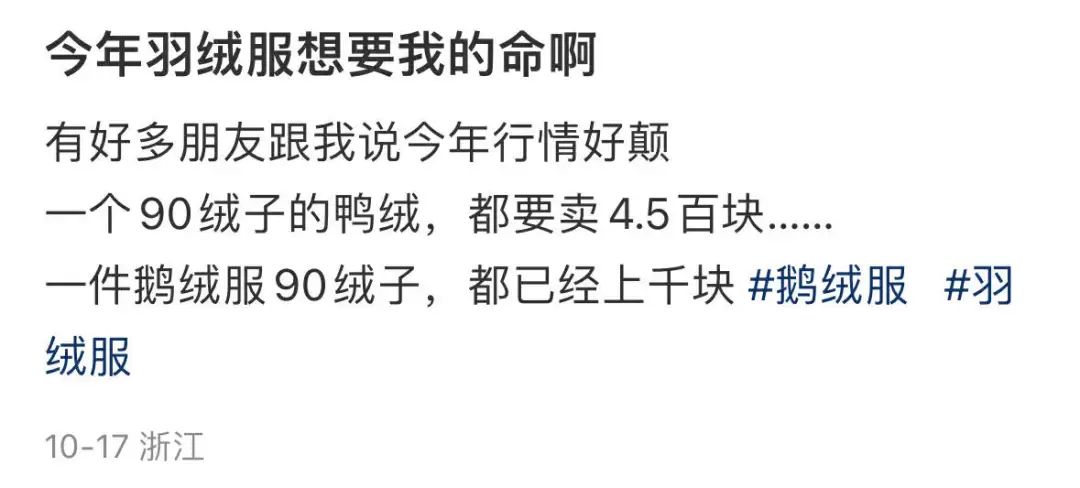眼瞅着女款轻如鸿毛,有人担心再这么薄下去就赶上童装了。网友听了赶紧摆摆手,可别污名化童装,“有时候儿童羽绒马甲都比女装充绒量高”。